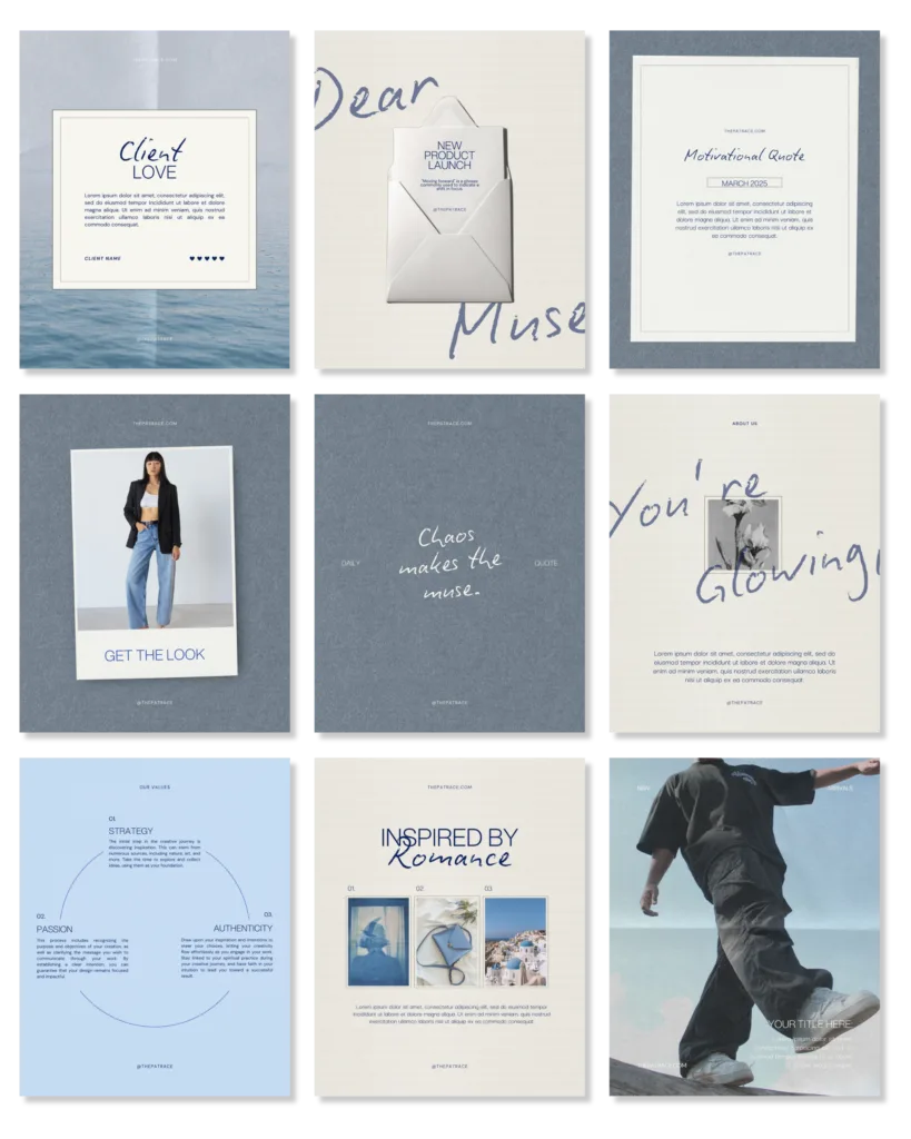 A set of 32 fully customizable Canva post templates — created for brands who want to connect through beauty, emotion and story.